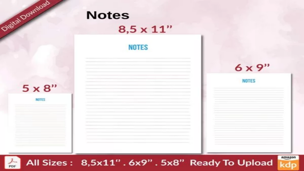 Notes KDP interior Ready To Upload, Sizes 8.5×11 6×9 5×8 inch PDF FILE Used as Amazon KDP Paperback Low Content Book, journal, Notebook, Planner